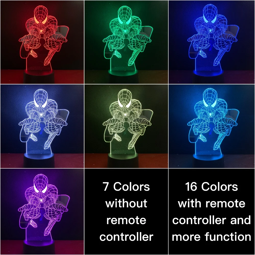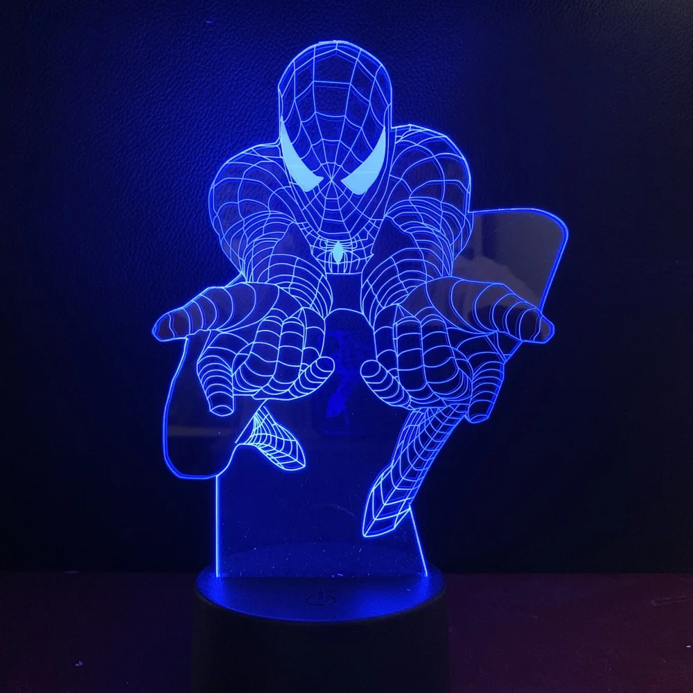 DC Marvel Superhero Spider Man Figure Kids Led Night Light Bedroom Decor Nightlight Child Birthday Gift 3D Night Lamp Spiderman