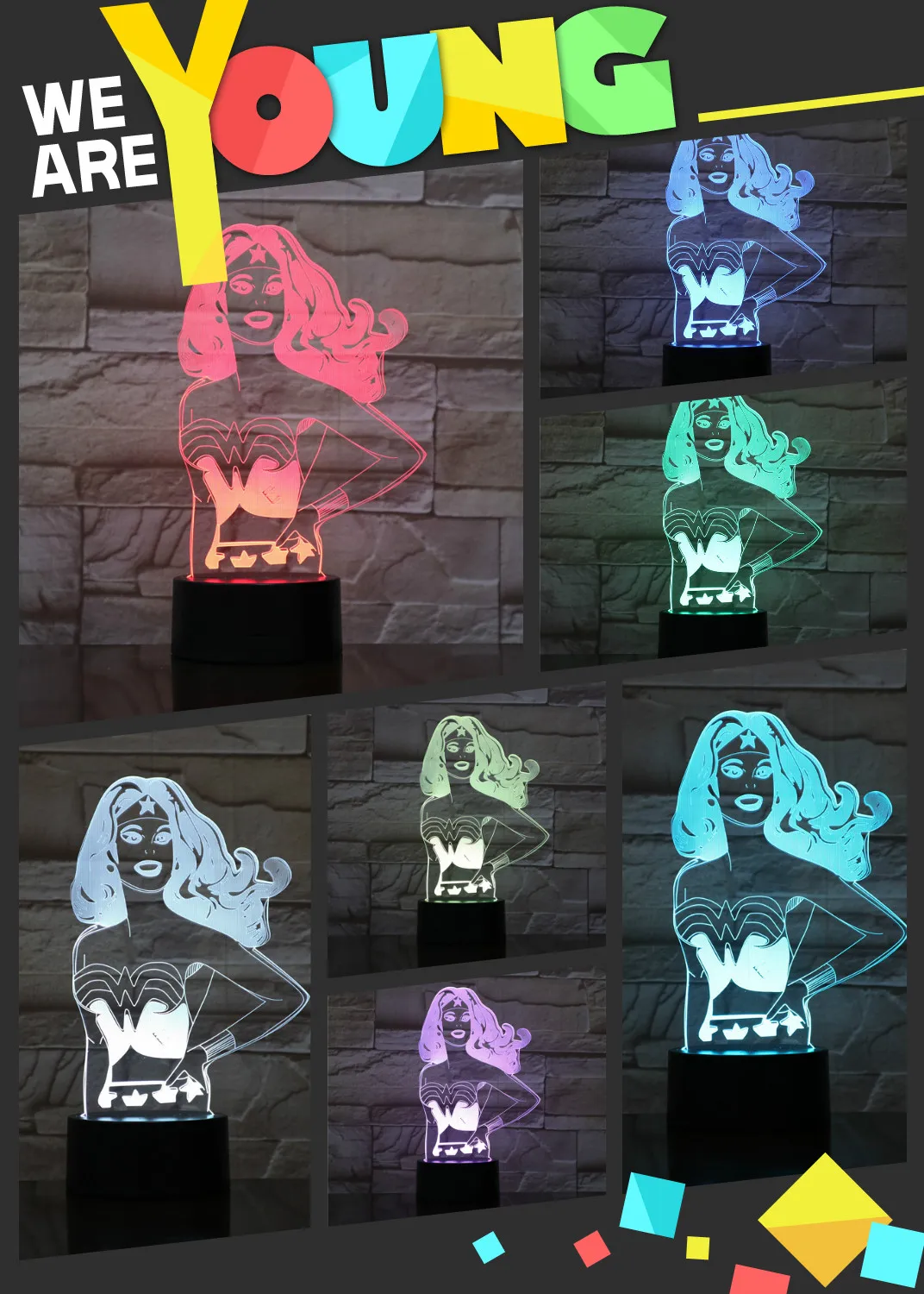 DC Marvel Superhero Wonder Woman Kids Led Night Light Usb Touch Sensor Bedroom Decoration Lamp Child Boy Present 3D Night Lamp